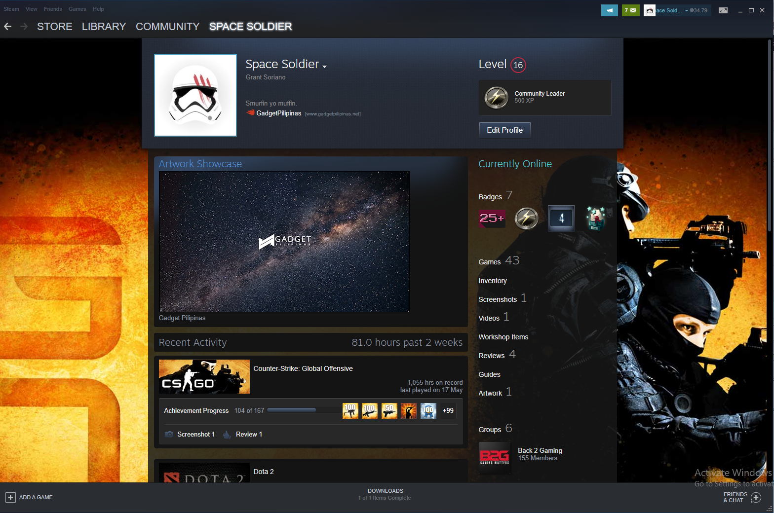 This might be the most boring thing listed in this article but it’s the most personal thing you can do. Completing tasks also grants you EXP for your steam profile and awards you badges. Getting higher levels in steam unlocks different showcase materials for you to display on your profile. Linking your profile with different platforms(such as Battle.net and Twitch) benefits you with rewards, security, and even ease of access. You can even go the extra mile and do your own artwork or commission someone for artwork to make your own unique profile.