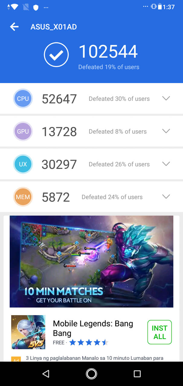 In our gaming test, the ASUS Zenfone Max M2 along with the 3GB RAM did just its job as expected. It’s not the most powerful in its price range but it’s definitely capable of running apps and some games at toned-down specs. Check out the scores that we got on the ASUS Zenfone Max M2 in some benchmarking applications.