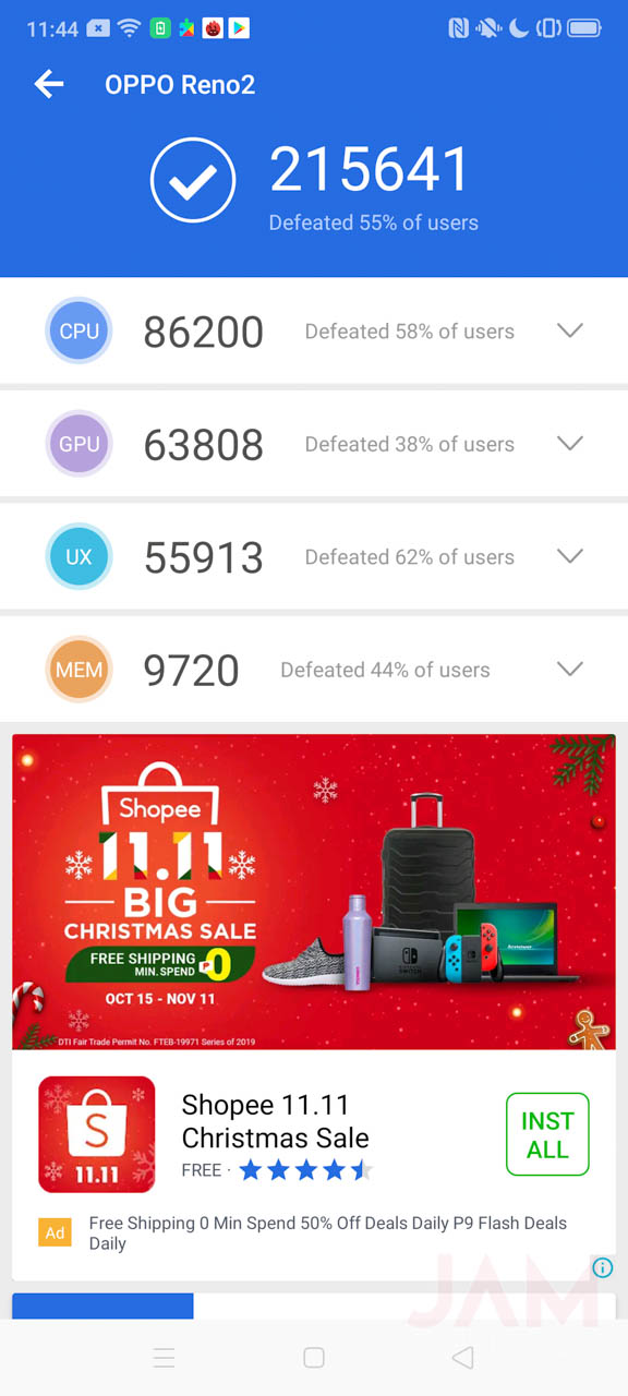 As expected, the Snapdragon 730G performed better than I expected. It excelled in games and it might not be as good as the Snapdragon 855 processor, but this one rock and will definitely run the things that you need on the smartphone. Here are the benchmark scores on gaming for the OPPO Reno2:
