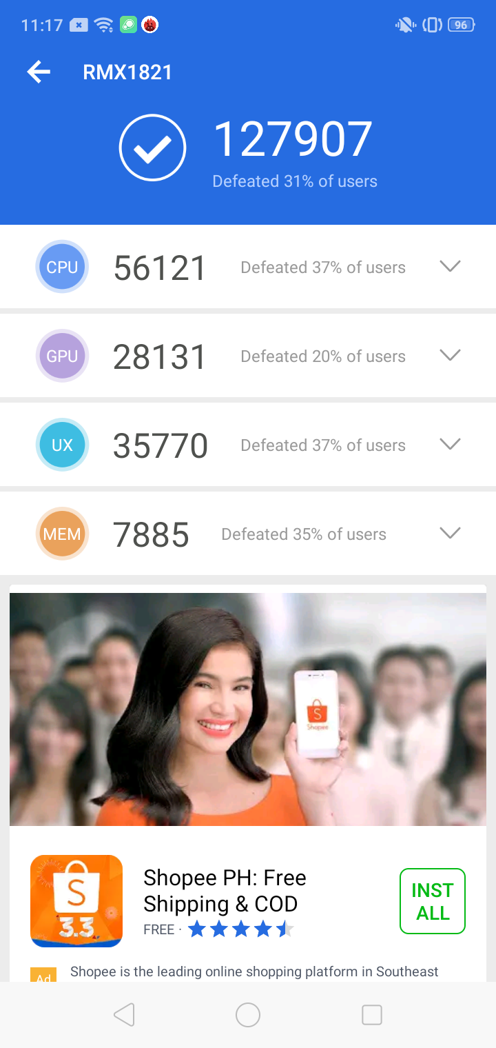 But in our test, the Realme 3 still managed to get a score of ______ at PC Mark which is still definitely good for me. In my normal usage, the smartphone got a day and half of the usage which is really good.