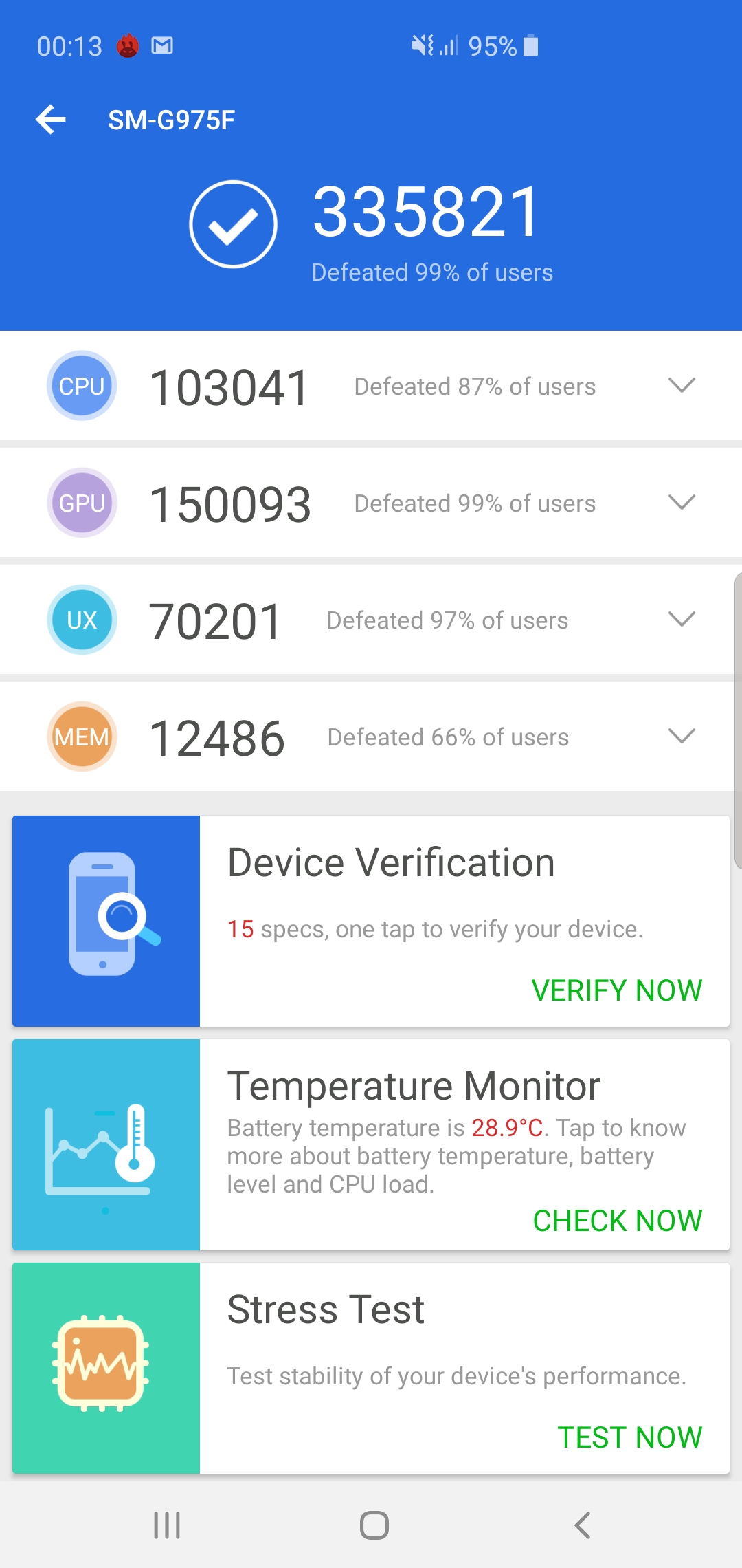 The performance? It’s really great. I can’t say that it’s the most powerful as I haven’t tried Snapdragon 855 but I’m pretty sure that the Samsung Galaxy S10+ can run everything that you in the smartphone. When it comes to benchmarks, I got these scores.