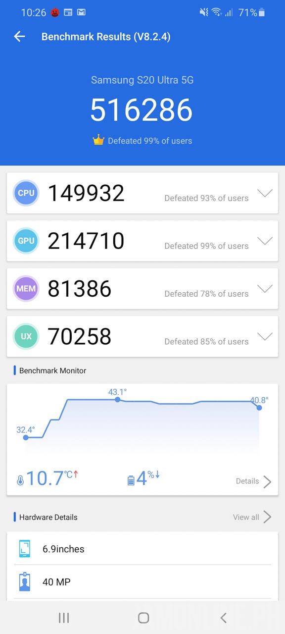 As Samsung has more control in the hardware of the Exynos chipset, it’s easier for them and more cost-effective to use this one. But are the benchmarks bad? No, not really. We’re still getting here some pretty high numbers but not as high as Qualcomm Snapdragon 865 chipset counterparts. Check out the benchmark scores that we got on the smartphone.