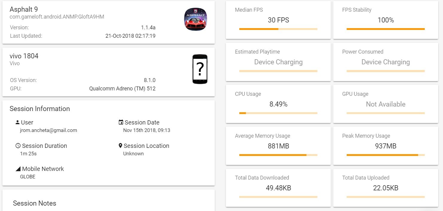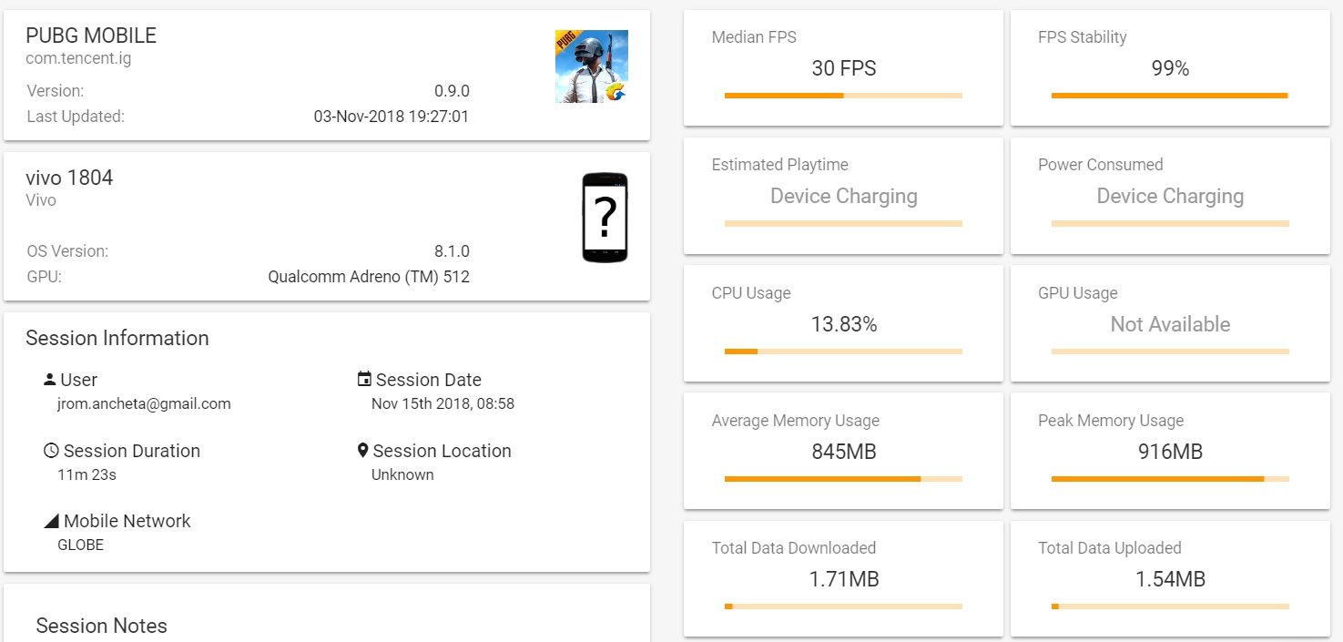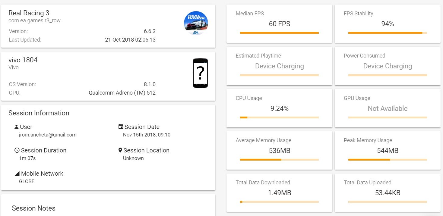 We were able to run PUBG Mobile at HD settings however the FPS is limited only to high which resulted in locked 30fps but we got a pretty good FPS stability thanks to the SD660 inside the smartphone. Both the Asphalt 9 and Real Racing 3 also performed well on Gamebench.