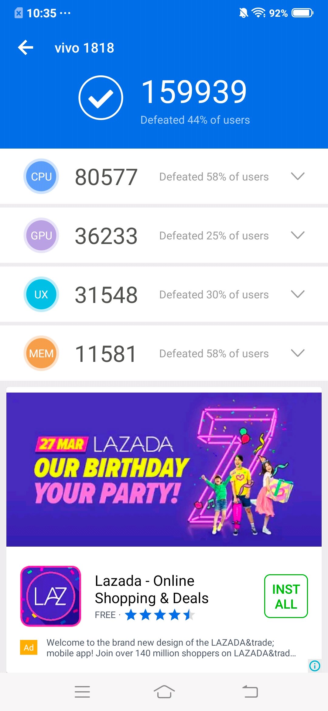 Inside the Vivo V15 Pro is a Snapdragon 675 chipset and then there’s the 8GB RAM and 128GB storage inside. This is actually nice as other countries only got the 6GB RAM. With this hardware inside, we got a pretty good benchmarks scores on the Vivo V15 Pro. We actually got these scores on the Vivo V15 Pro.