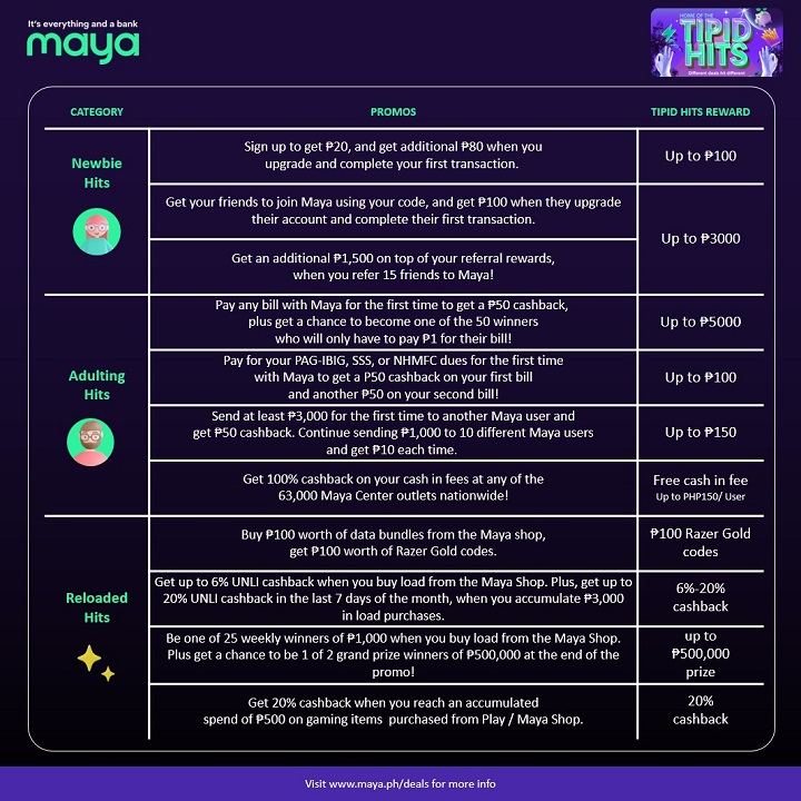 For instance, under the Adulting Hits, those who will pay any bill with Maya for the first time will get a Php50 cashback. Meanwhile, users can also get a chance to become 1 of the 50 winners who will only have to pay Php1 for their bill or save up to Php5,000.