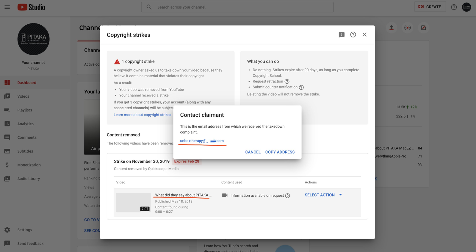 #2 Issuing a DMCA Takedown Against Pitaka